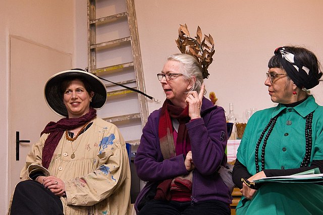 ![]() von links .nach rechts. Gertrud Schleising - Gabriele Münter - Susanne Ahner - Marianne von Werefkin - Dr Kathrin Heinz Sie fordern gleiche Ausbildungschaancen, öffentliche Aufmerksamkeit und nehmen dafür auch prekäre Lebensumstände in Kauf. |