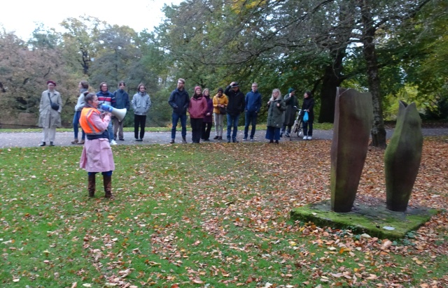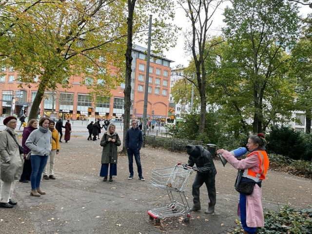 gerufen . Aber bereits nach dem Krieg wurde Kunst im Stadtraum platziert. Besonders beliebt sind die Stadtmusikanten von 1953, ![]() Bernd Altenstein: Das Ende - 1978 ![]() Foto: Markus Scheer Anonym: Obdachloser mit Einkaufswagen - 2020 .Die Skulptur hatte für großes Aufsehen gesorgt, als sie plötzlich über nacht in den Wallanlagen auftauchte ... ![]() P.S. Pardon! - Absperrungen mit Flatterband sind seit 2021 out! |