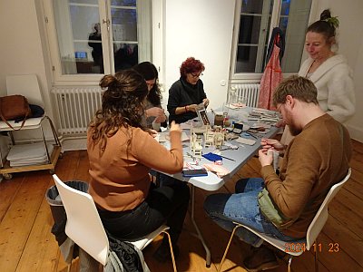 Material: verschiedene Stoffe, Matraze: 9 x15cm Kopfkissen: 9 x 6,5cm Bettdecke: 10 x 13cm Stuhlkissen / je nach Modell + Füllwatte Scheren, Nadeln und Garn Die Matraze wird gewendet, der Nässeschutz eingelegt und das Frotteeteil vernäht. Kopfkissen und bettdecke werden ebenfalss gewendet, ausgestopt und vernäht. Das Stuhlkissen wird lediglich gewendet und mit einer Naht schnmal verschlossen. |