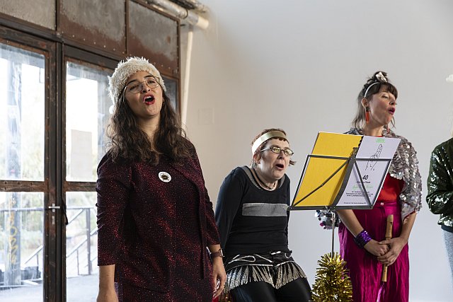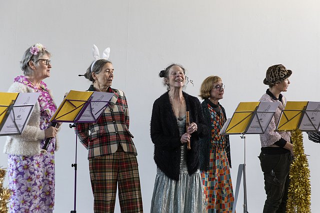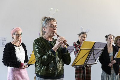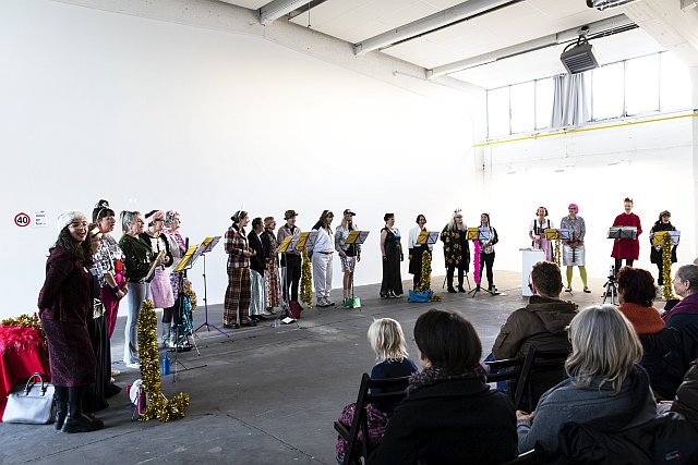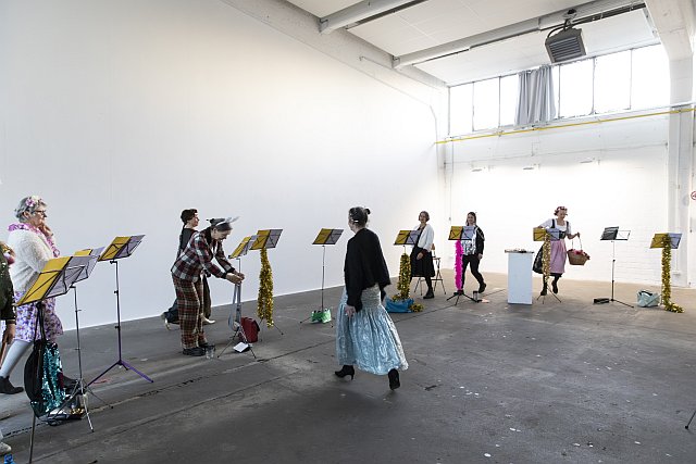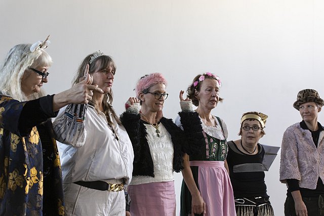 ![]() Ü40- ein Sprechstück zu 40 Jahren KÜNSTLERINNENVERBAND, basierend auf Protokollen der Mitgliederversammlungen 1984- 2004 und verwoben mit 40 Begriffen, die für die beteiligten Künstlerinnen mit dem KÜNSTLERINNVERBAND oder mit KUNST zu tun HABEn! |