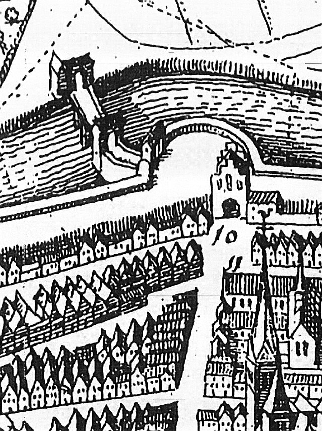 ![]() Herdentor - der offizielle Durchlass zur Bürgerweide Matthäus Merian d.Ä., Ausschnitt aus "Brema" - 1641 |