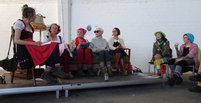 Jede/r ist ihres/seines Glückes Schmied_in* Die Damen von links nach rechts: G.S.,Amelia Edwards (Ilka Rautenstrauch),Lucie Renshaw Silke Morhoff), Annette Ortlieb, Akkela Dienstbier, Irena Gefken und Anja Schnaars Foto: Albrecht Genzel