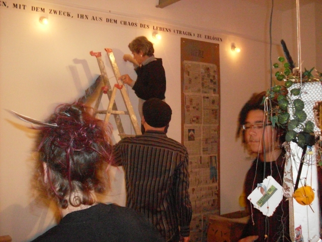eine Installation im Café Hellgrün, Okel im Rahmen der Straße der Kunst vom 15.-Mai - 19.Juni 2011