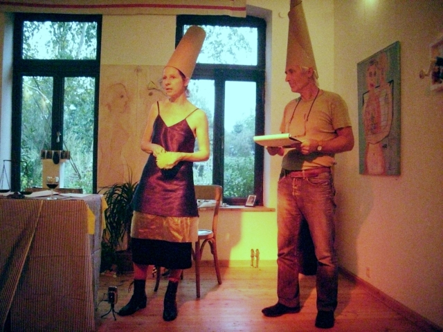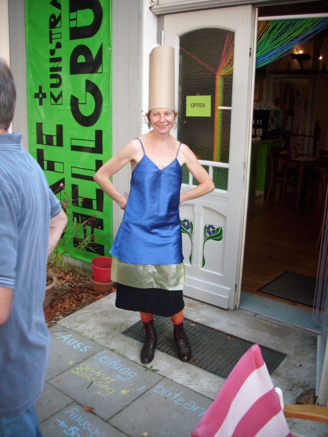 Performance in der Ausstellung "Baustelle" Bilder Objekte Texte, ein Projekt im Sommer 2011, Café Hellgrün Okel bei Syke |