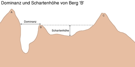 Ein Berg ist höher und steiler als ein Hügel. Er muss sich durch eine gewisse Eigenständigkeit auszeichnen. Mögliche Indizien dafür, ob ein Berg als eigenständig angesehen werden kann, sind seine Dominanz und seine Schartenhöhe. Die Schartenhöhe ist die Höhendifferenz zwischen einem Berggipfel und der nächsten, höchstgelegenen Einschartung, zu der man absteigen muss, wenn man den nächst höheren Gipfel erreichen will. |