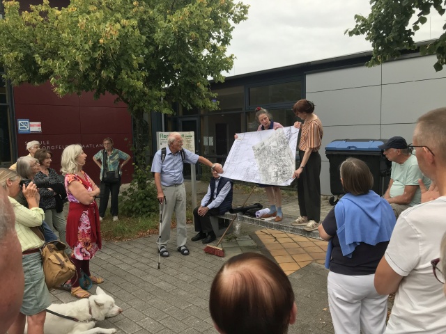 Neubaugebiet. Begegnen zweier Fußgänger muss auch mit Regenschirmen möglich sein. Zu berücksichtigen ist auch, dass im Durchschnitt 46% der Fußgänger:innen ein Gepäckstück tragen. Nehmen wir jetzt nochmal Bezug auf das Jahr der Erstvermessung1830. Gerne zitiere ich hierzu den am 15. März 1830 geborenen, deutschen Schriftsteller und Literaturnobelpreisträger Paul Heyse: ![]() "Erdachtes mag zu denken geben, Doch nur Erlebtes wird beleben." ![]() Nach