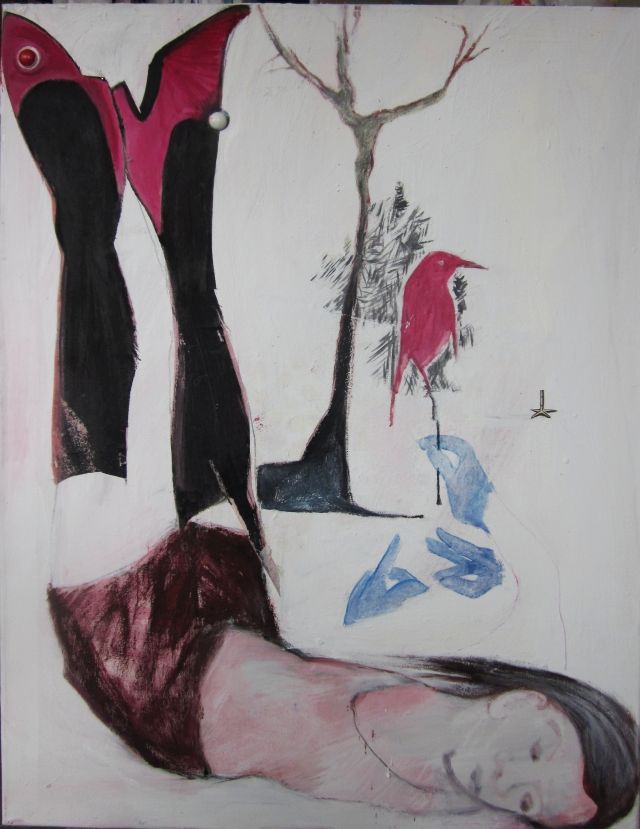 GIRLS - Malerei / Collage / Stickerei und Applikation auf Nessel 2011