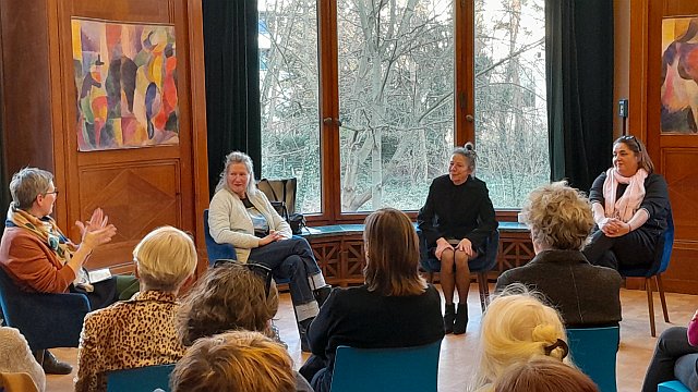 Salon des Femmes_2 am 2. März 2024 im Institut francais Bremen ![]() ... und das sind meine Gäste heute Nachmittag! Sonia Delaunay / performed by Gertrud Schleising Anja Fußbach, Künstlerin Nicole Nowak, Zentrum für Kunst beim Senator für Kultur Moderation: Kathrin Heinz, Mariann Steegmann Institut. Kunst & Gender ![]() Teil 2: Modenschau Teil 3: Practize with ART Peinture à la Sonia Delaunay Flamenco-Puzzle Memory Farbtypberatung Konzept und Performance: Gertrud Schleising Le Salon des Dames, c'est avant tout un endroit où se