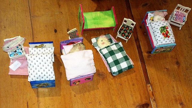Drei Stationen Bettchen bauen und farbig gestalten Bettwäsche und Stuhlkissen nähen Den Kern gestalten und frisieren > jeweils 25 Minuten Zeit ... Man darf nur nicht aufgeben! Fotos:Albrecht Genzel |