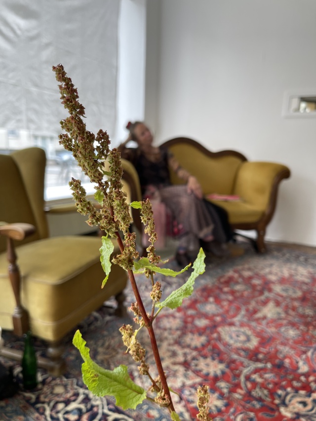 ![]() Maria Sibylla Merian mit dem Wiesensauerampfer Sie schreibt in: Der Raupen wunderbare Verwandelung und sonderbare Blumennahrung ...worinnen