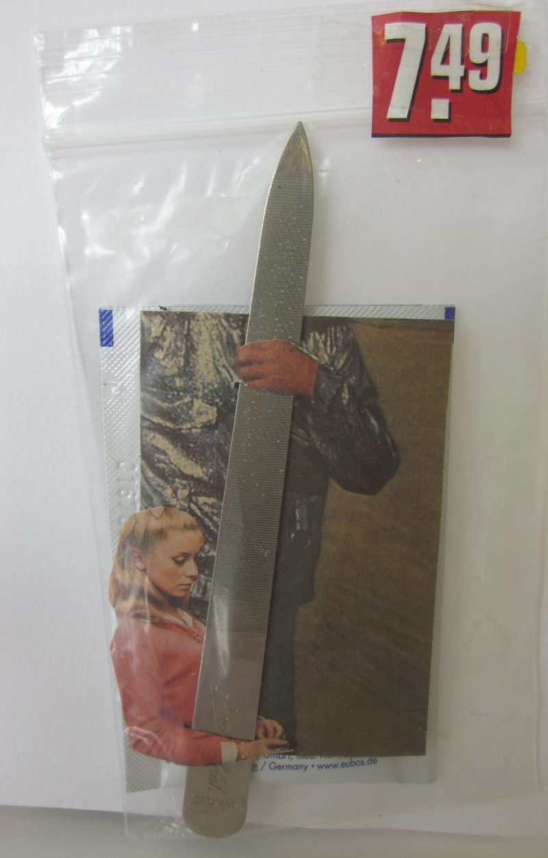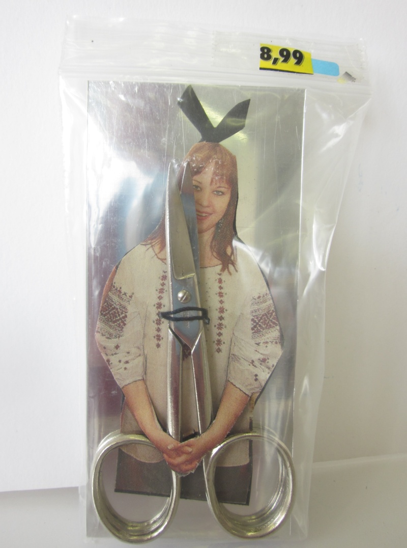 ein nettes Mädchen aus einem osteuropäischen Nachbarland präsentiert eine Nagelschere.