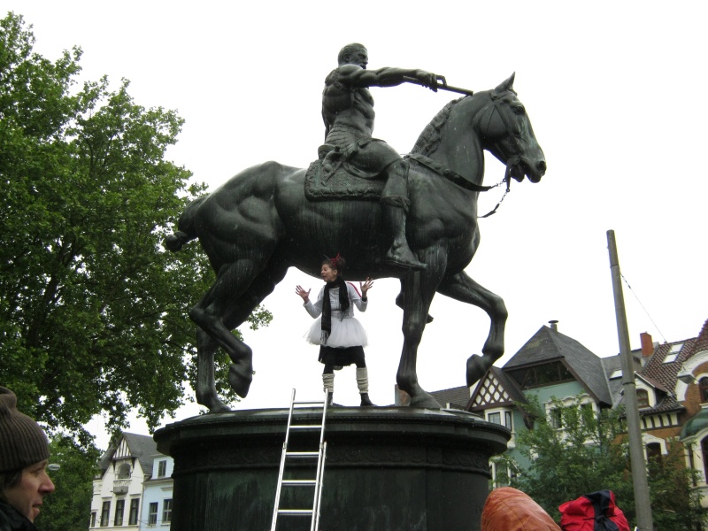 Performance am Reiterstandbild Friedrich III., Sonntag, 3.Juni 2012 am Kaiser-Friedrich-Platz, Bremen