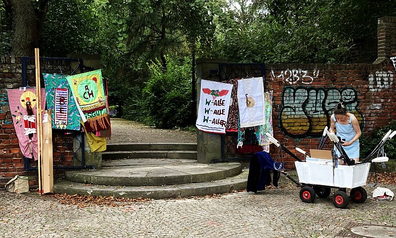 ![]() Herdentor, Doventor, Ostertor ...Straßennamen erinnern, dass Bremen einmal von einer Stadtmauer mit Toren gesichert war. Beim „Wallfahrten“ auf der Contrescarpe (Fachbegriff für die äußere Mauer einer Stadtbefestigung mit Graben) werden die Standorte der ehemaligen Stadttore aufgesucht und dabei nicht zuletzt die Gestalt der seit 2002 denkmalgeschützten Wallanlagen als Ergebnis von 500 Jahren Bremer Stadtgeschichte aufgeschlüsselt: „Sag mir, wo die Tore sind“ hat dabei die Anmutung einer „Wallfahrt“ mit illustren Bannern und Musik.Die Gäste nehmen als Bannerträger:innen teil und sind eingeladen, in den von der„Peergroup“ provozierten Wallfahrt-Singsang einzustimmen. Konzept und Guide: Gertrud Schleising Performerinnen: Anja Fußbach, Marion Bösen, Rebekka Kalbas, Petra Reinhardt, Weibke Sieg und Michael Kleiner Die Veranstaltung findet am 8.September 2024, dem Tag des offenen Denkmals statt und ist Teil des Bundesweiten Programms. In Bremen wird die Veranstaltung von der DGGL - Deutsche Gesellschaft für Gartenkunst- und Landschaftskultur unterstützt. |