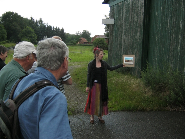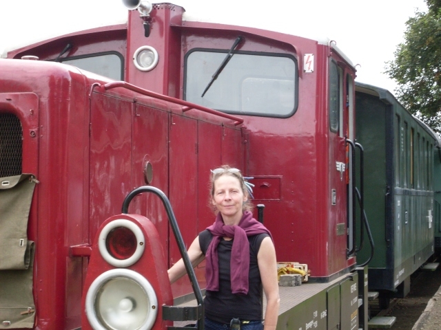 kombinierte Bus-und Bahnreise startete um 13 Uhr in Bremen-Huckelriede. Wir fuhren im liebevoll restaurierten Verdener Kleinbahnexpress durch dunkle Wälder, grüne Wiesen und dichten Regen nach Stemmen. |