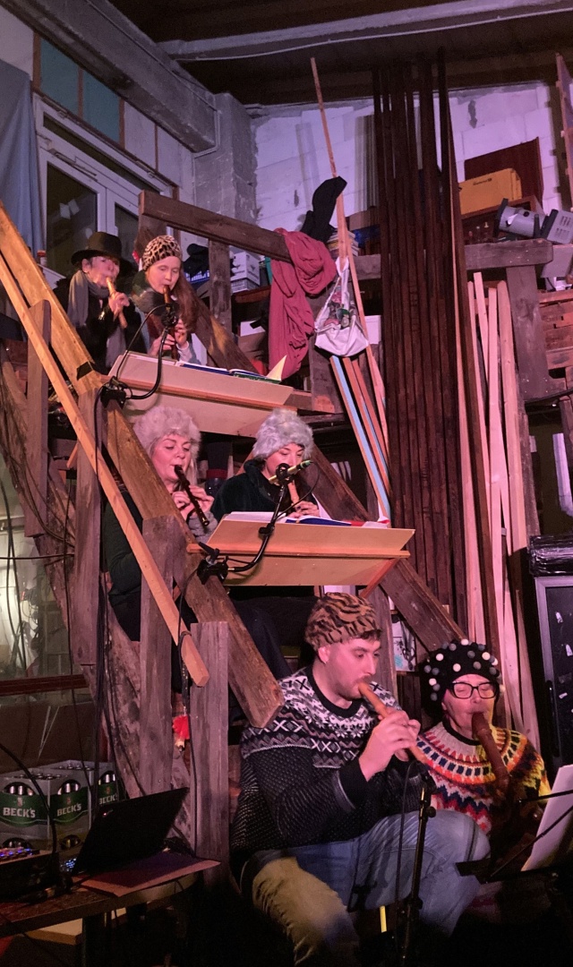 ... Das im Frühjahr 2023 gegründete Ensemble versteht sich in seiner Arbeitsweise als divers. Durch intensive Netzwerkarbeit ist das Ensemble in kurzer Zeit auf neun Mitglieder angewachsen. Für noch mehr klangliche Fülle würden wir uns besonders über Zuwachs an Tenor- und Baßflöten freuen. Interessierte Flötenmusiker:innen können gerne jederzeit dazukommen. (save the Date: montags, 14-15 Uhr) |